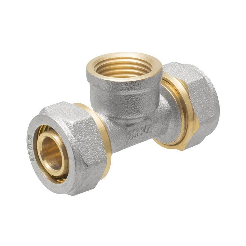 Предназначен для разделения потоков воды. Имеет два выхода для соединения металлопластиковых труб диаметром 20 мм методом обжима и один выход с внутренней резьбой 1/2″ (16 мм).