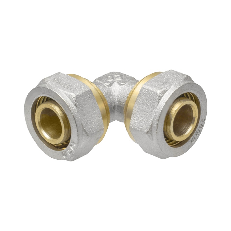 Предназначен для соединения металлопластиковых труб диаметром 20 мм под углом 90 градусов.