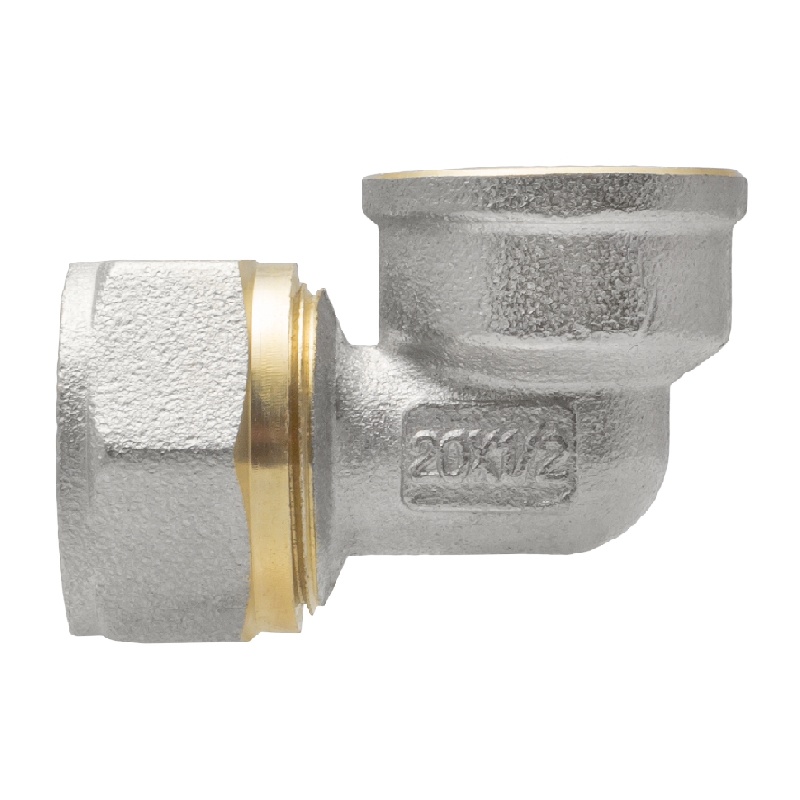 Предназначен для соединения металлопластиковых труб диаметром 20 мм с другими системами, с помощью резьбового соединения с внутренней резьбой 1/2″, под углом 90 градусов.