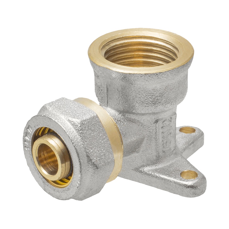 Предназначен для соединения металлопластиковых труб диаметром 16 мм с другими системами, с помощью резьбового соединения с внутренней резьбой 1/2″, под углом 90 градусов. Имеет возможность крепления к стене.