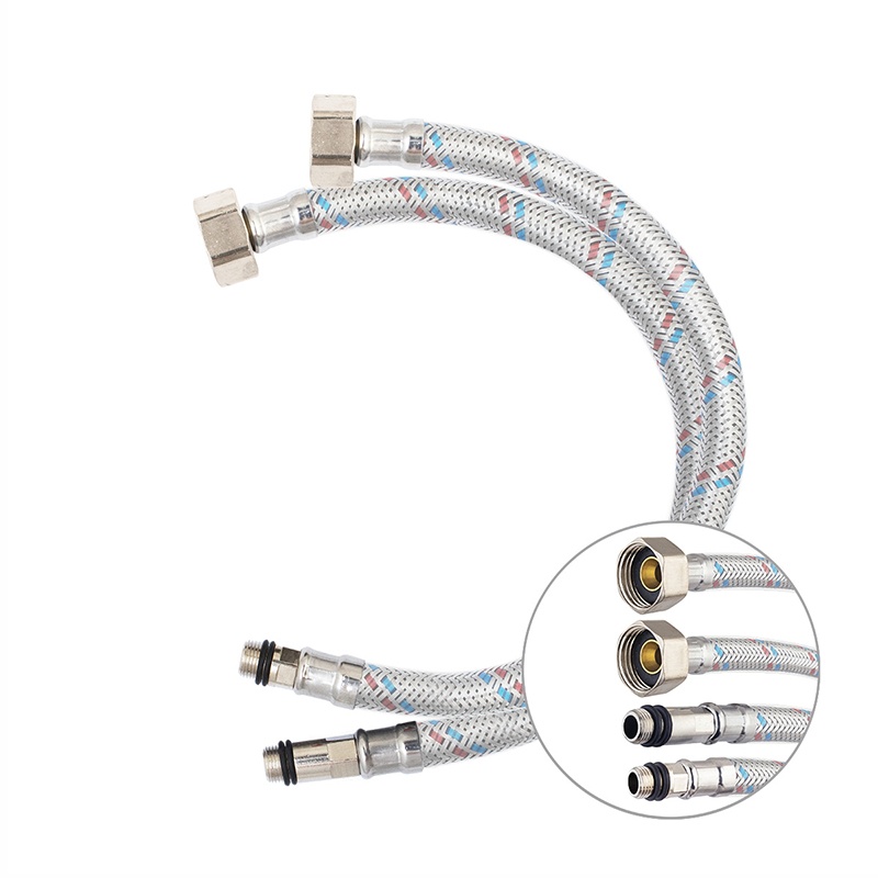 Применяется для подключения смесителей к системе водоснабжения. С одной стороны подводки находится накидная гайка 1/2″, с помощью которой происходит соединение с водопроводом, с другой стороны — штуцер М10 для монтажа подводки к смесителю. Срок службы — 10 лет.
