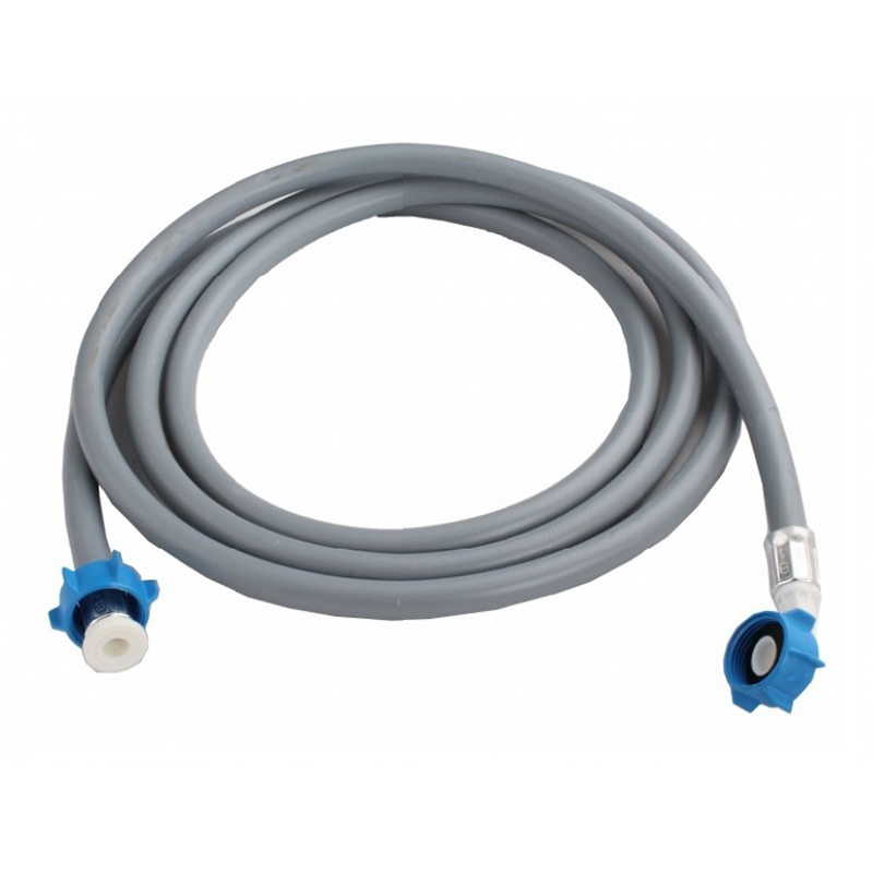 Предназначен для подключения стиральной или посудомоечной машины к системе водоснабжения. Произведён из высококачественного ПВХ. Cостоит из двух слоёв ПВХ, с армированием посередине полиэфирной нитью и выполнен согласно всем нормам производителей стиральных машин. Выдерживает давление от 20 бар до 60 бар (при испытании на разрыв), при нормативе в 10 бар, температура эксплуатации от +5°C до +25°C. Соединение шланга происходит с помощью двух фитингов: прямого и углового. Шланг комплектуется прокладками д. 3/4″, сделанными из EPDM, обладающим высокой степенью устойчивости к износу и имеющий высокую стойкость к воздействиям водной среды. В комплекте идёт фильтр грубой очистки воды, поступающей в стиральную машину из системы водоснабжения.