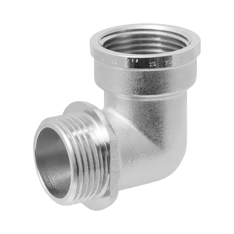 Предназначен для соединения труб одинакового диаметра под углом 90 градусов. Имеет один выход с наружной резьбой и один выход с внутренней резьбой 1″.