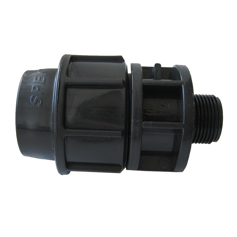Предназначена для перехода на резьбовое соединение. Имеет один выход для соединения ПЭ труб d=40 мм и один выход с наружной резьбой 1″
