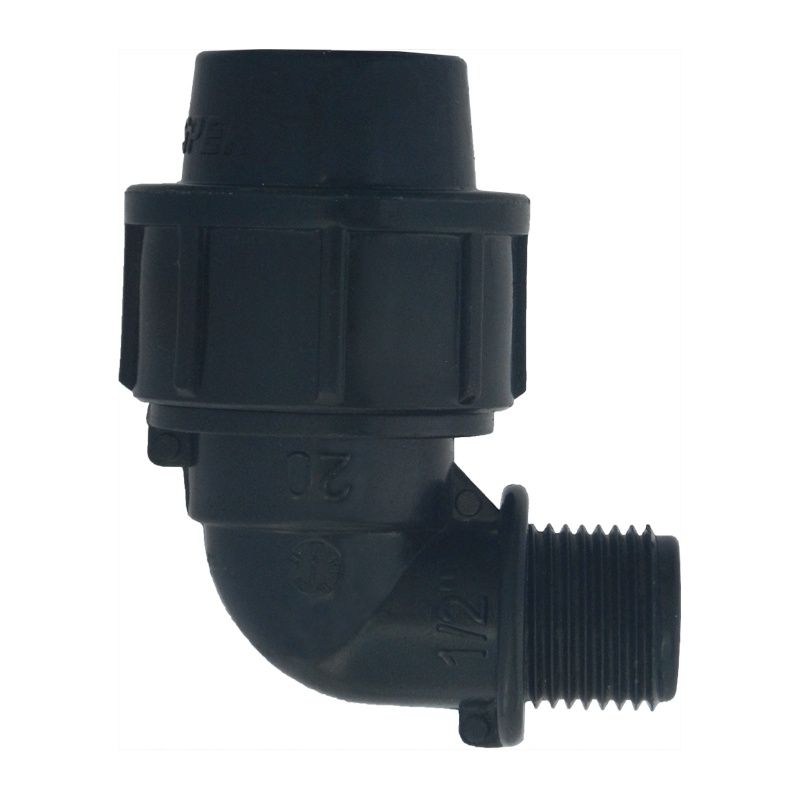 Отвод выполнен из полипропилена и предназначен для перехода на резьбовое соединение. Имеет один выход для соединения ПЭ труб d=20 мм и один выход с наружной резьбой 1/2″. Используется в системах хозяйственно-питьевого водоснабжения для транспортирования воды с температурой до 40° С и максимальным рабочим давлением 1,6 МПа.