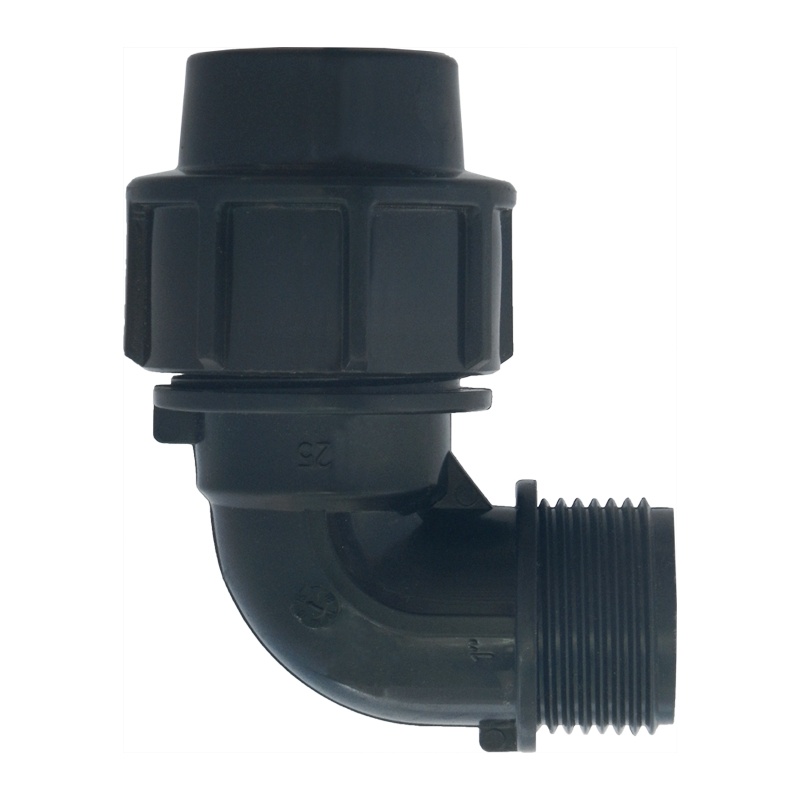 Отвод выполнен из полипропилена и предназначен для перехода на резьбовое соединение. Имеет один выход для соединения ПЭ труб d=25 мм и один выход с наружной резьбой 1″. Используется в системах хозяйственно-питьевого водоснабжения для транспортирования воды с температурой до 40° С и максимальным рабочим давлением 1,6 МПа.