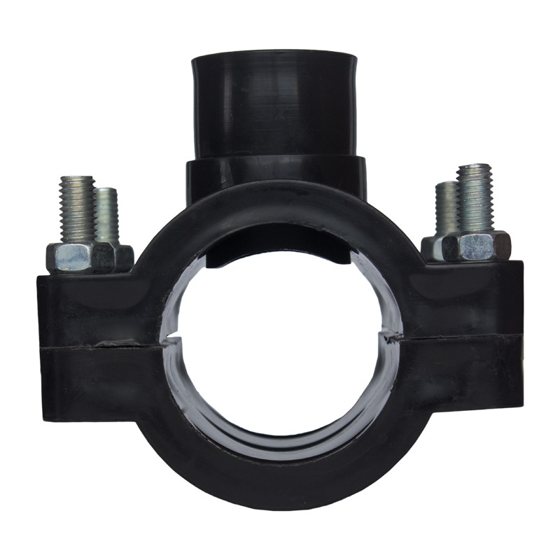 Предназначена для врезки второстепенного ответвления трубы от магистрального трубопровода. Имеет два выхода для соединения ПЭ труб d=50 мм и один выход с внутренней резьбой 3/4″