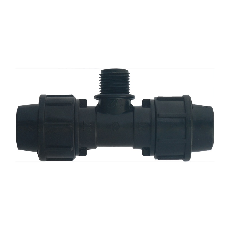 Тройник выполнен из полипропилена и предназначен для разветвления потока воды на два направления. Имеет два выхода для соединения полиэтиленовых труб диаметром d=20 мм и один выход с наружной резьбой 1/2″. Используется в системах хозяйственно-питьевого водоснабжения для транспортирования воды с температурой до 40° С и максимальным рабочим давлением 1,6 МПа.