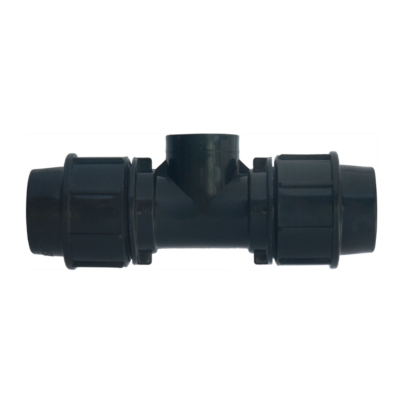 Тройник выполнен из полипропилена и предназначен для разветвления потока воды на два направления. Имеет два выхода для соединения полиэтиленовых труб диаметром d=32 мм и один выход с внутренней резьбой 3/4″. Используется в системах хозяйственно-питьевого водоснабжения для транспортирования воды с температурой до 40° С и максимальным рабочим давлением 1,6 МПа.