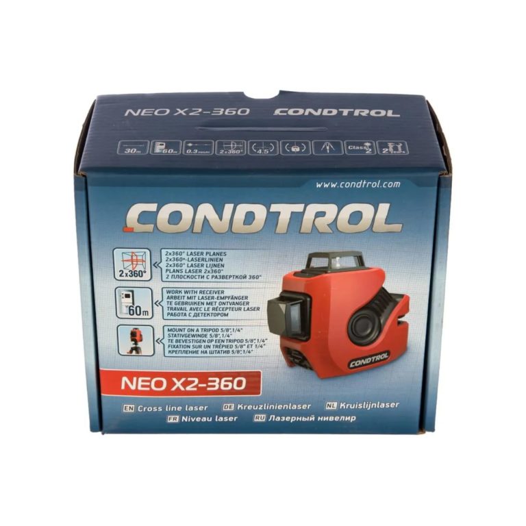 Лазерный нивелир CONDTROL NEO X2-360 широко востребован при проведении строительных и ремонтных работ, укладки кафельной плитки, напольных покрытий, монтаже окон и дверей, установке корпусной мебели, разметки поверхностей различного угла наклона.
