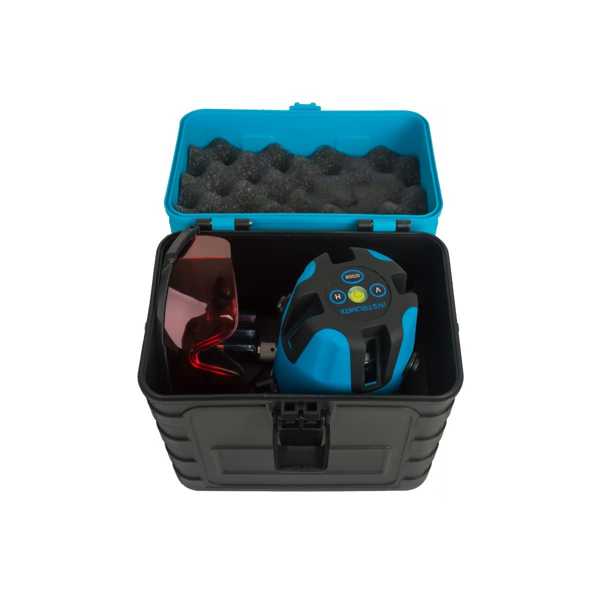 Существует возможность отключения лазерных линий для экономии зарядки аккумулятора. Обеспечивает более точное выставление уровня над нужной поверхностью. Встречающиеся вертикальные линии помогают в создании быстрой разметки на стенах или перегородках. Можно использовать в больших по площади помещениях, дальность его работы достигает 20 метров.