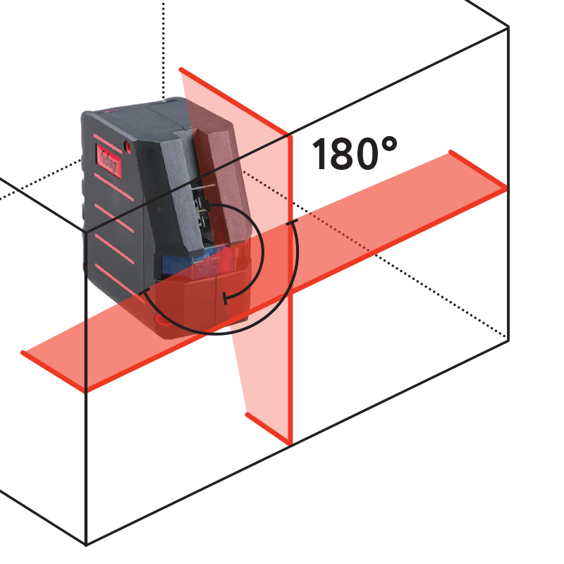 • линейный нивелир, который строит плоскости, широкий угол развертки лучей — 180 градусов
