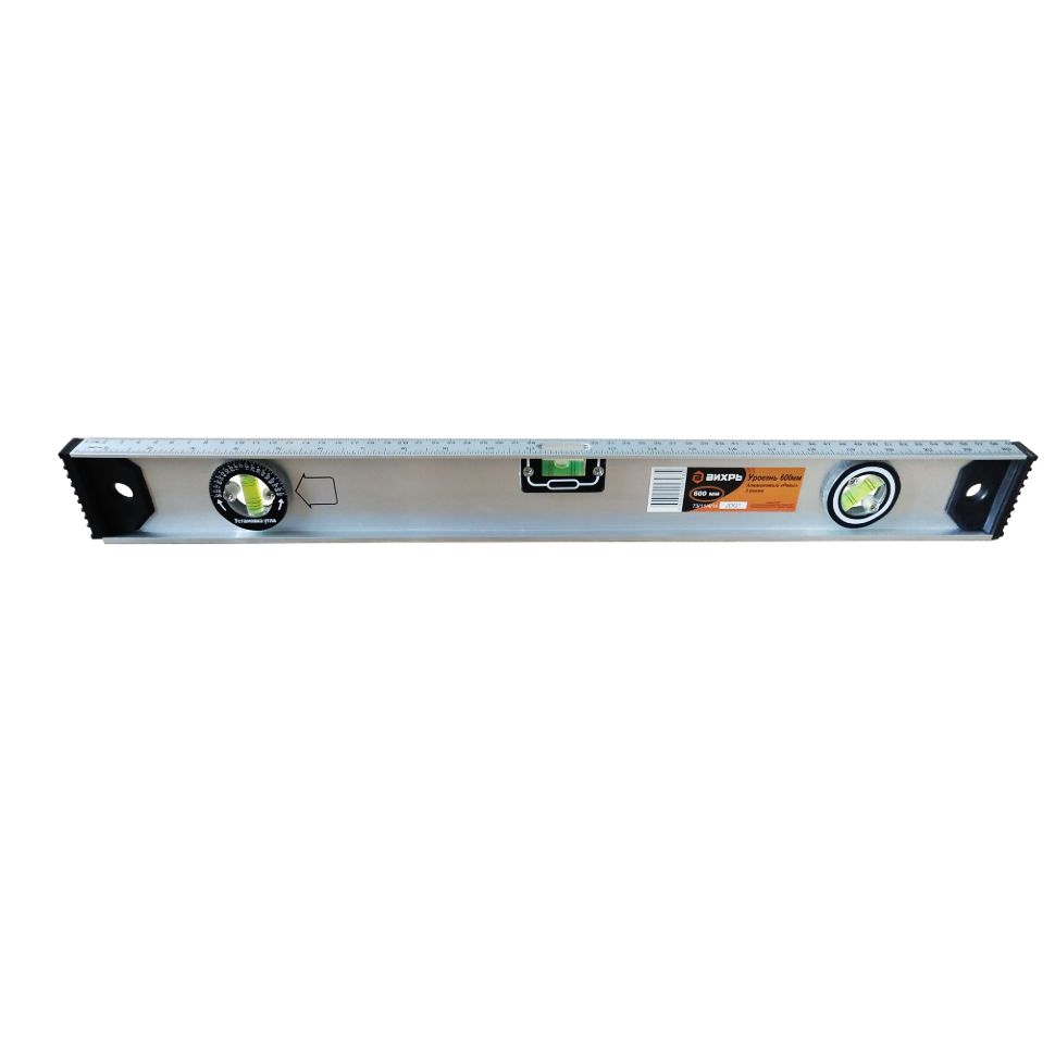 Уровень алюминиевый «Рельс», 400 мм, 3 глазка (1 поворотный) Вихрь — измерительный инструмент при строительных, ремонтных и отделочных работах для поиска и исправления отклонения поверхностей. Корпус прочный и износостойкий, изготовлен из алюминия. Фрезерованная рабочая поверхность служит для уменьшения возможной погрешности при измерениях. Длина уровня 400 мм.Особенности:
