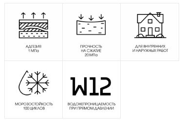 - создает водонепроницаемые покрытие (марка W12)