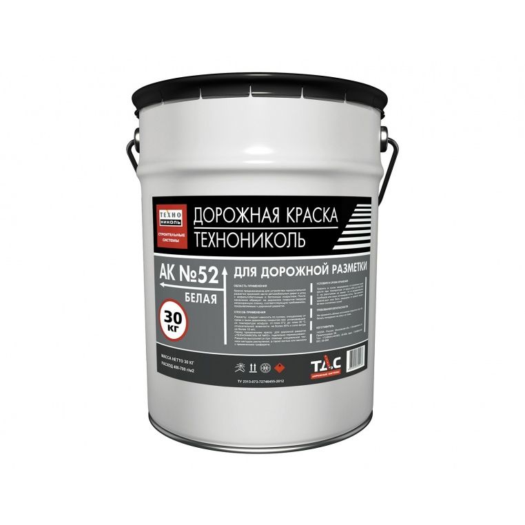 Краска «ТЕХНОНИКОЛЬ АК» предназначена для создания горизонтальных разметок на проезжей части автомобильных дорог и улиц с асфальтобетонным и бетонным покрытием. Рекомендуемый расход краски для дорожной разметки «ТЕХНОНИКОЛЬ АК» от 400г/м2 до 700 г/м2в зависимости от типа основания.