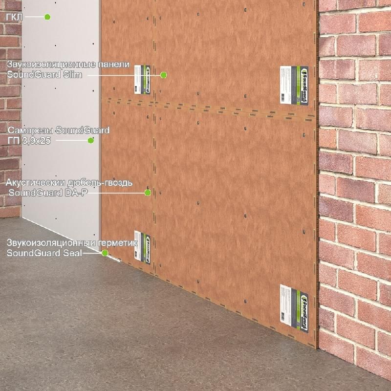 Готовый набор ВСЕХ необходимых материалов для бескаркасной звукоизоляции стены.