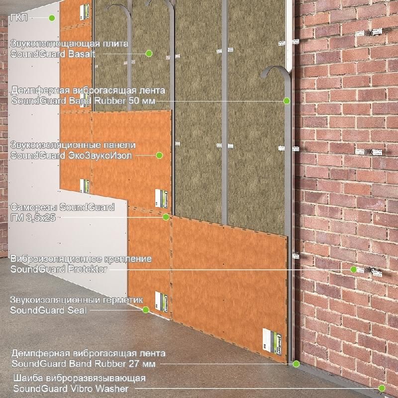 Готовый набор ВСЕХ необходимых материалов для бескаркасной звукоизоляции стены.