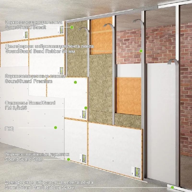 Готовый набор ВСЕХ необходимых материалов для звукоизоляции перегородки.