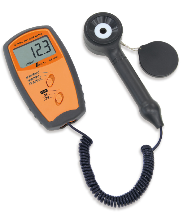 Служит для контроля излучения УФ-устройств, диапазон измерений 0 — 20 мВт/см2.