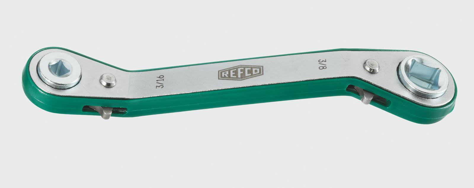 Ключ с трещоткой, изогнутый. Квадрат: ¼″ × ⅜″ и 3/16″ × 5/16″.