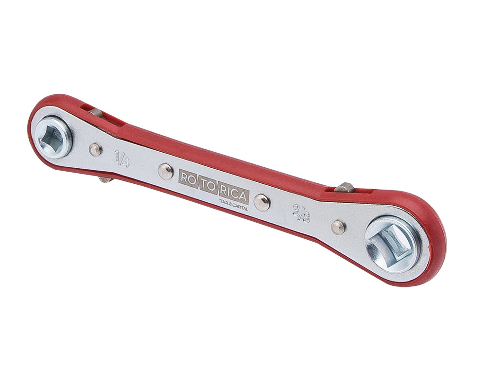 Комбинированный прямой ключ с квадратными размерами в одном ключе: 1/4″ х 3/8″ и 3/16″ х 5/16″. Трещотка 72 зуба.