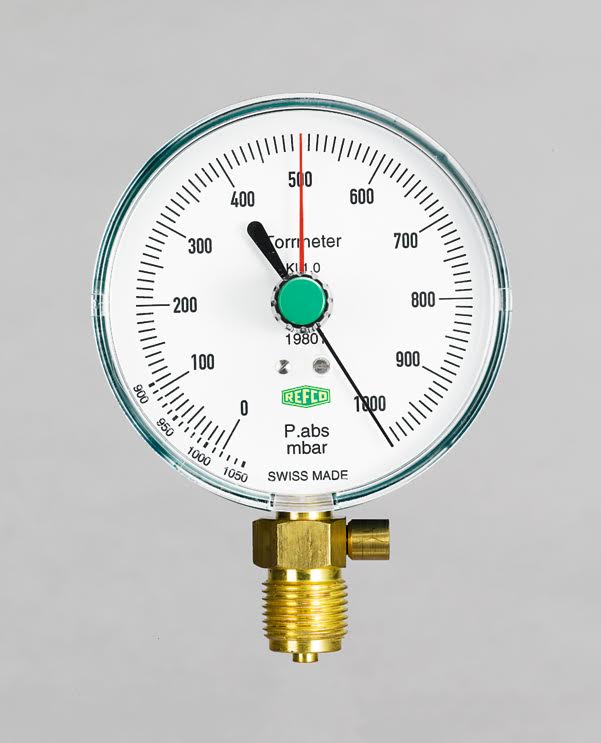 Вакуумметр со встроенным предохранительным клапаном для защиты от избыточного давления.