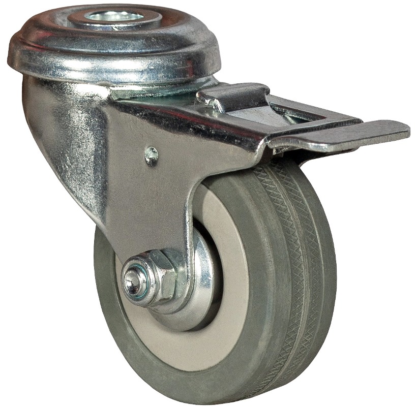 Колесо аппаратное с тормозом под болт М12 120 мм — SChgb 55 — это аппаратное колесо, предназначенное для установки на тележки, оборудование, мебель и другую технику. Обеспечивает плавное и манёвренное перемещение по различным типам полов.