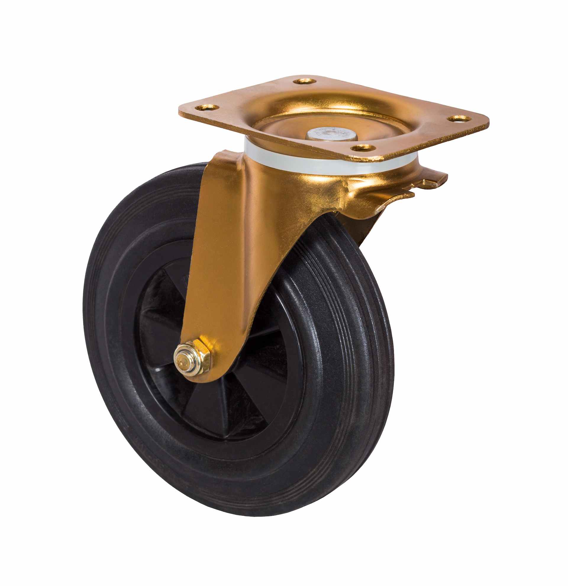Колесо для евроконтейнера, с площадкой, поворотное, с тормозом, пластиковый обод, 200 мм (SCB80K)