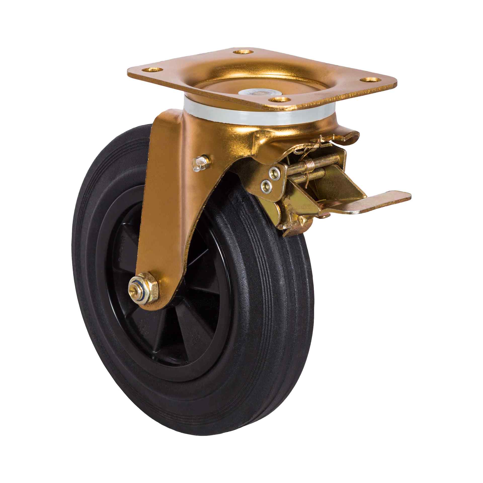 Колесо для евроконтейнера, с площадкой, поворотное, с тормозом, пластиковый обод, 200 мм (SCB80K)