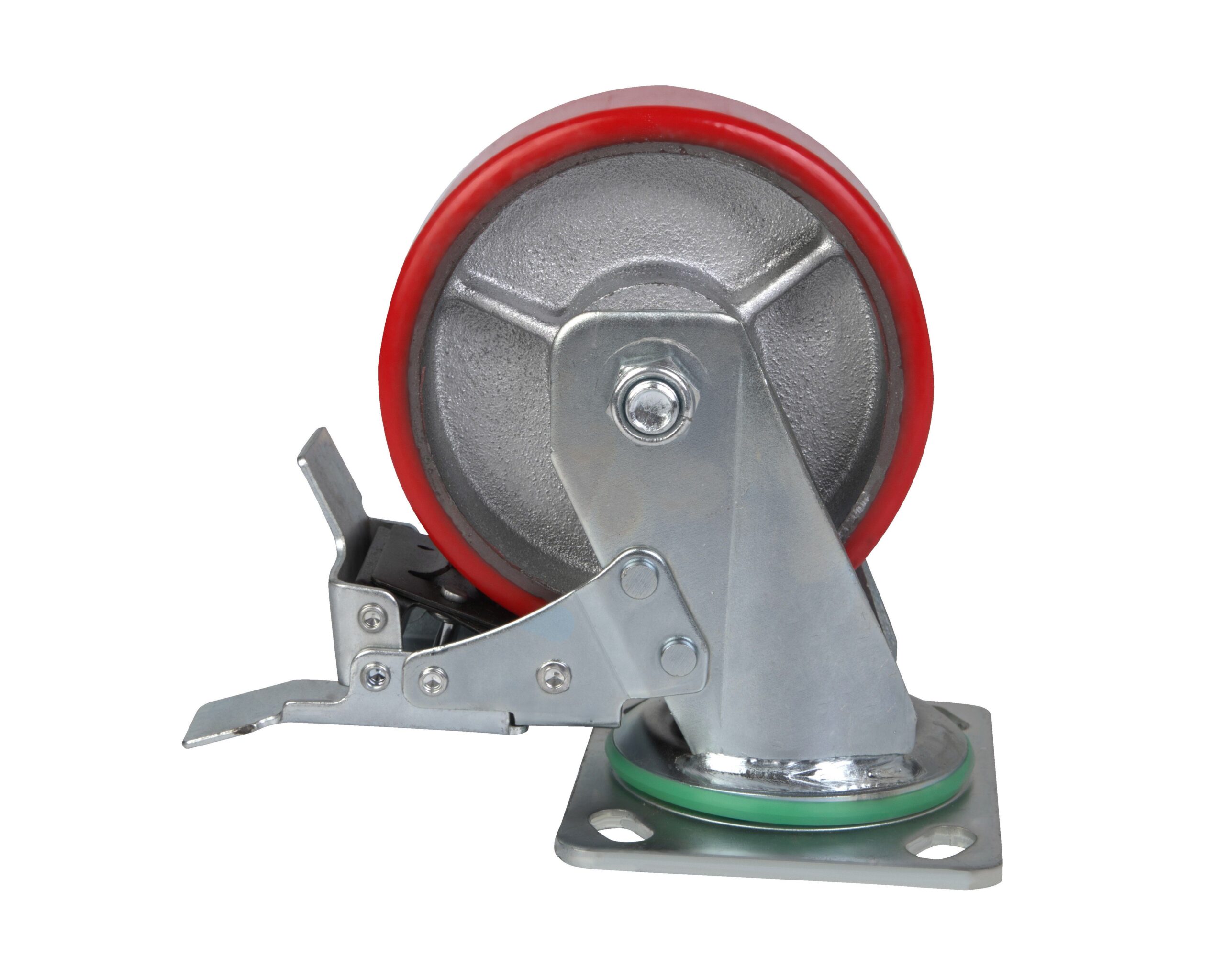Большегрузное колесо с полиуретановой шинкой С-4102-DUS поворотное, с тормозом, г/п 350 кг