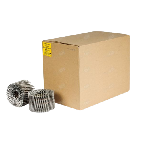 Барабанный (машинный) гвоздь паллетный неусиленный, с кольцевой/винтовой/прямой накаткой . Используется в строительстве, производстве поддонов и деревянной тары, производстве кабельных барабанов. Прочность скрепления увеличивает кольцевая накатка и клей расплав, нанесенный на каждый гвоздь.
