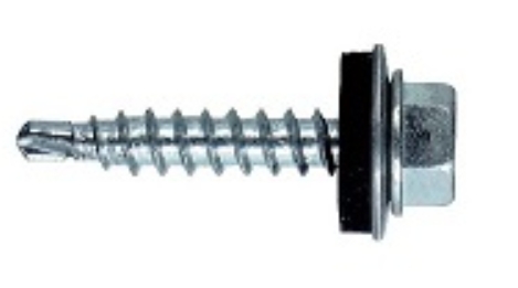 Кровельные саморезы диаметра 4.8 мм разработаны для крепления кровли к дереву, они имеют характерный редкий шаг резьбы и уменьшенное сверло. Головка у саморезов под шестигранную биту, также имеется шайба плоская с резиновой прокладкой EPDM для повышения герметизации.