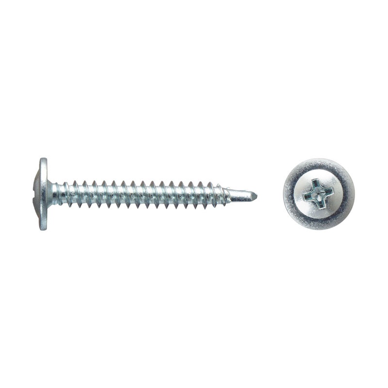 Саморез используется для крепления листов металла толщиной до 2 мм без предварительного сверления. Имеет галетную головку с пресс-шайбой, крестообразный шлиц Phillips №2, наконечник — сверло.
