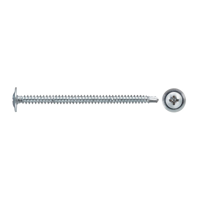 Саморез используется для крепления листов металла толщиной до 2 мм без предварительного сверления. Имеет галетную головку с пресс-шайбой, крестообразный шлиц Phillips №2, наконечник — сверло.