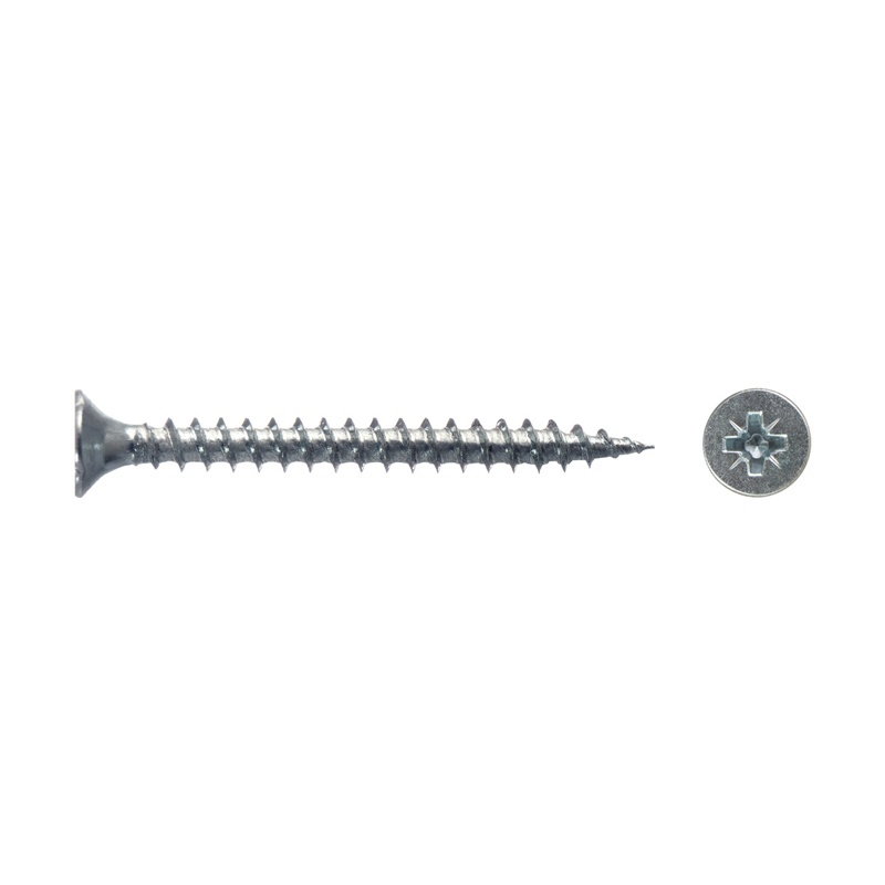 Саморез используется для крепления дерева, ДСП, ДВП и других материалов. Имеет потайную головку, крестообразный шлиц Pozi, острый наконечник, крупную резьбу.