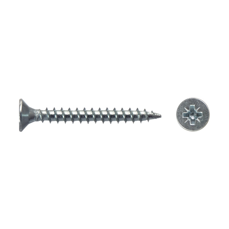 Саморез используется для крепления дерева, ДСП, ДВП и других материалов. Имеет потайную головку, крестообразный шлиц Pozi, острый наконечник, крупную резьбу.