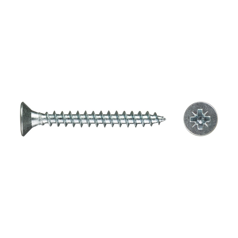 Саморез используется для крепления дерева, ДСП, ДВП и других материалов. Имеет потайную головку, крестообразный шлиц Pozi, острый наконечник, крупную резьбу.