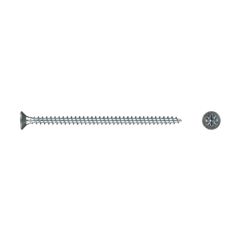 Саморез используется для крепления дерева, ДСП, ДВП и других материалов. Имеет потайную головку, крестообразный шлиц Pozi, острый наконечник, крупную резьбу.