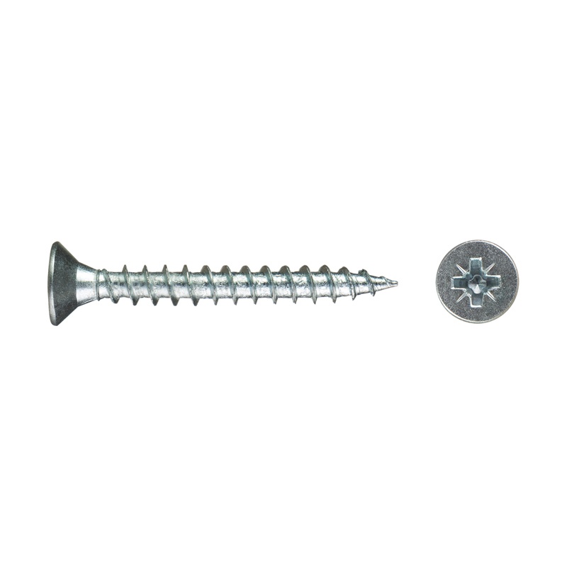 Саморез используется для крепления дерева, ДСП, ДВП и других материалов. Имеет потайную головку, крестообразный шлиц Pozi, острый наконечник, крупную резьбу.