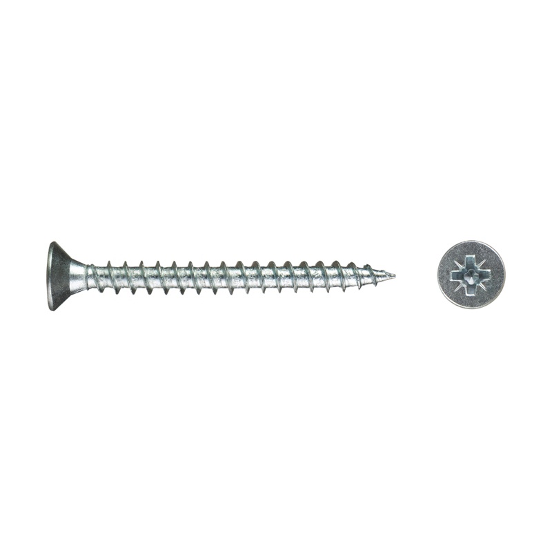 Саморез используется для крепления дерева, ДСП, ДВП и других материалов. Имеет потайную головку, крестообразный шлиц Pozi, острый наконечник, крупную резьбу.
