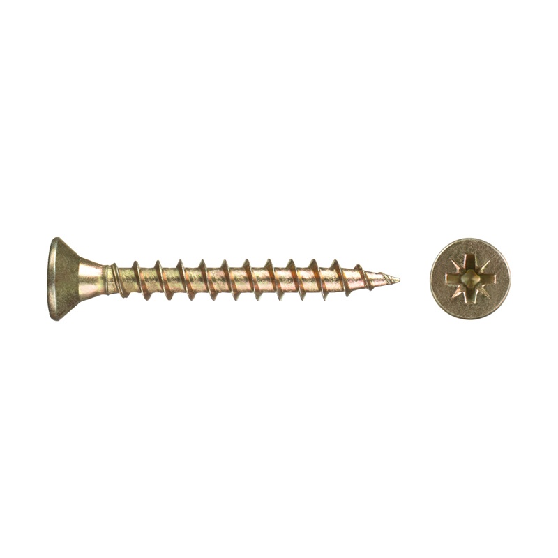Саморез используется для крепления дерева, ДСП, ДВП и других материалов. Имеет потайную головку, крестообразный шлиц Pozi, острый наконечник, крупную резьбу.