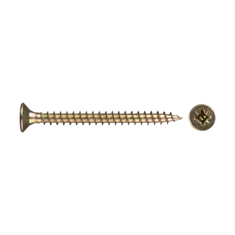 Саморез используется для крепления дерева, ДСП, ДВП и других материалов. Имеет потайную головку, крестообразный шлиц Pozi, острый наконечник, крупную резьбу.
