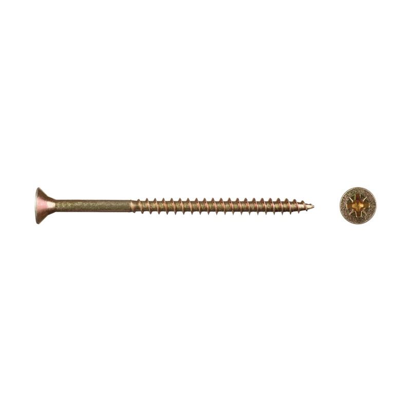 Саморез используется для крепления дерева, ДСП, ДВП и других материалов. Имеет потайную головку, крестообразный шлиц Pozi, острый наконечник, крупную резьбу.