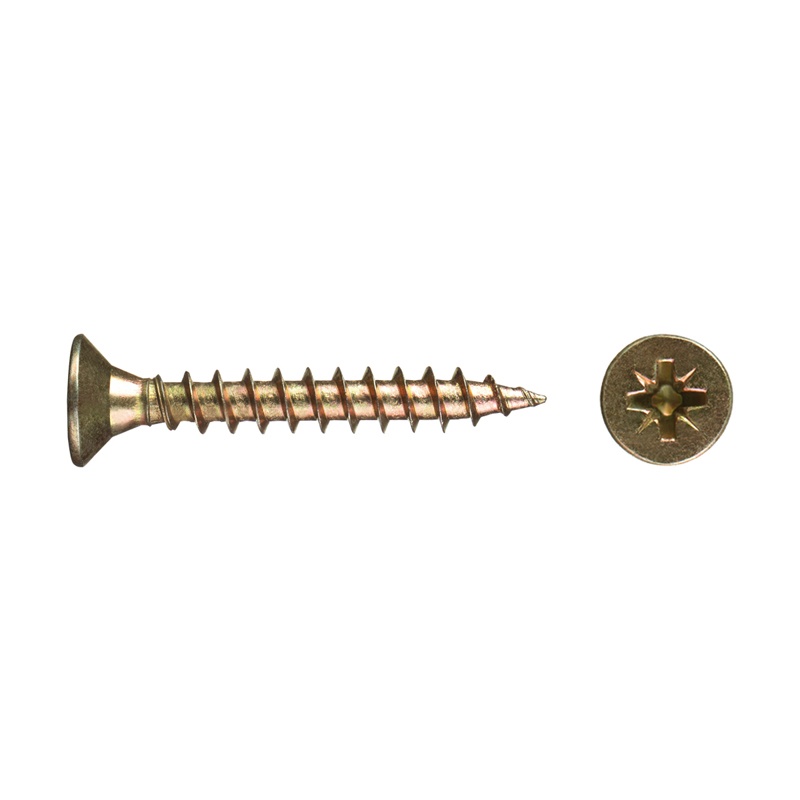 Саморез используется для крепления дерева, ДСП, ДВП и других материалов. Имеет потайную головку, крестообразный шлиц Pozi, острый наконечник, крупную резьбу.