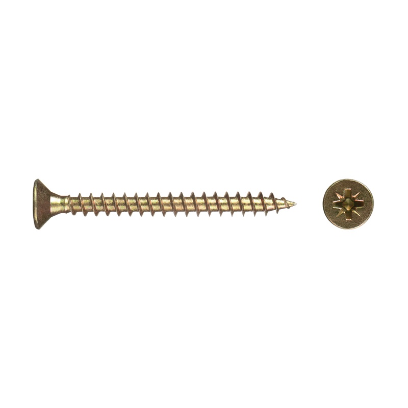 Саморез используется для крепления дерева, ДСП, ДВП и других материалов. Имеет потайную головку, крестообразный шлиц Pozi, острый наконечник, крупную резьбу.