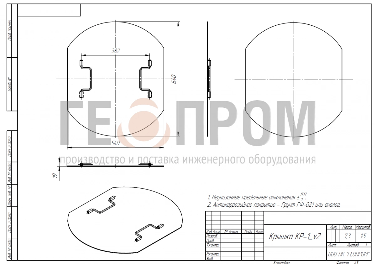 Крышка КР-1 изготавливается из стального листового материала, отвечающего требованиям ГОСТ 1050-88. По размерам она подходит для люков Л, Т и ТМР, монтируется на опорное кольцо в горловине смотрового или канализационного колодца. В зависимости от комплектации может оснащаться запорным механизмом или не иметь его. На сайте компании «Геопром» в наличии крышка для люка КР-1 с доставкой по Москве или области. Также для согласования заказа или получения всей актуальной информации о нашей продукции звоните нам в рабочее время.