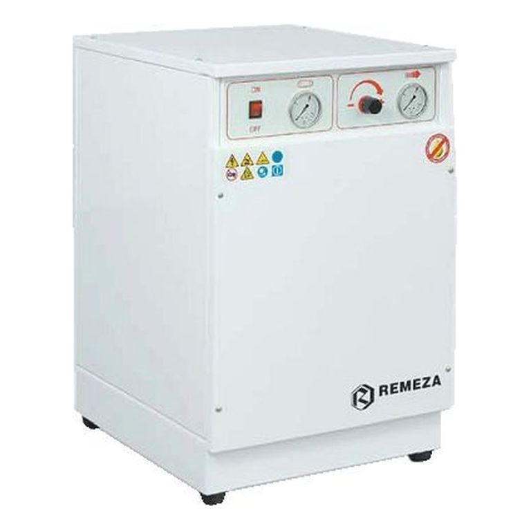 Безмасляный поршневой компрессор с прямым приводом Remeza 16.GMS150К помещен в звукоизолирующий корпус на резиновых опорах, поэтому производит низкое количество шумов и вибрации. Благодаря отсутствию примесей углеводородов в сжатом воздухе устройство может применяться в медицине и фармацевтике. Производительность компрессора позволяет запитать пневматическое оборудование двух стоматологических кресел при условии их одновременной работы. Устройство функционирует в автоматическом режиме под управлением реле давления (прессостата), а также содержит тепловую защиту, предохраняющую двигатель и поршневой блок от перегрева.