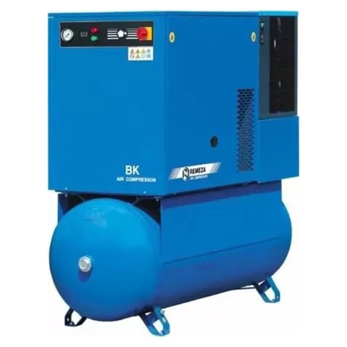 Винтовой компрессор с маслозаполненным блоком Remeza BK15E-15-500ДФ – это одна из наиболее мощных и производительных моделей линейки ВК (Е). Оборудование выполнено в виде моноблока и может устанавливаться на любые типы перекрытий. Компрессор оборудован ресивером на 500 литров и осушителем рефрижераторного типа, благодаря чему сжатый воздух не требует дополнительной очистки. Ременная передача уменьшает пиковые нагрузки на двигатель, что повышает надежность оборудования и снижает стоимость его обслуживания.