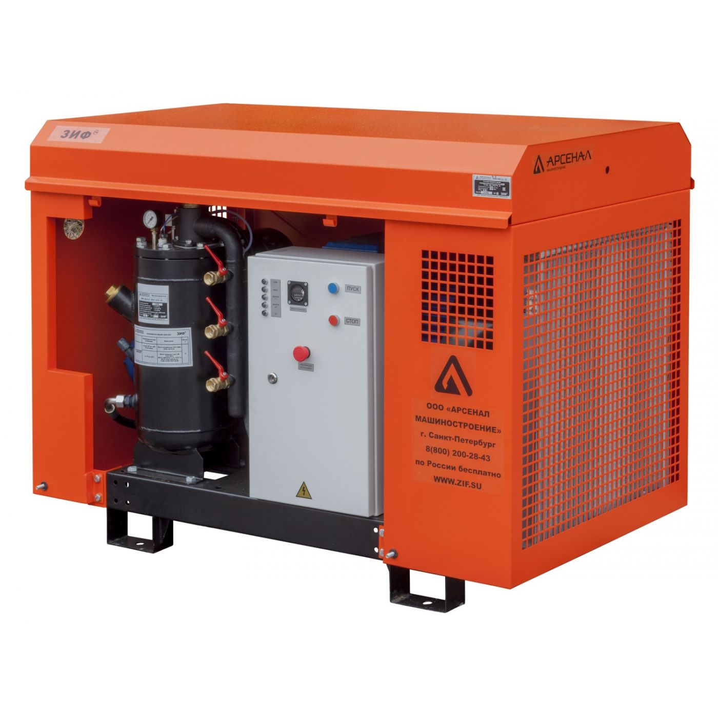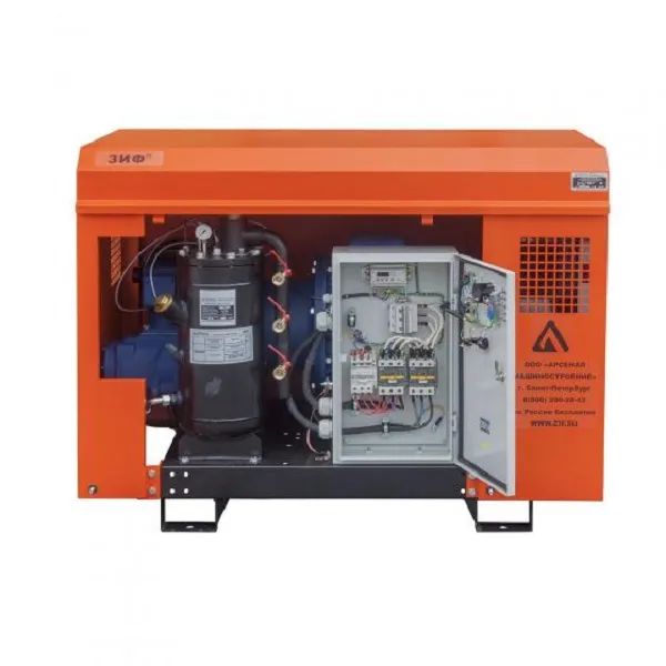 Компрессор ЗИФ-ПВ8/0,7 (артикул: 009-5020) – дизельная промышленная установка, основное назначение которой – нагнетание сжатого воздуха необходимого для выполнения различных задач при помощи пневматического оборудования и инструмента. Данная модель энергетической машины выпускается без шасси, что предполагает стационарное использование в помещении или установку в кузов автомобиля. Область применения подобных агрегатов – ремонтные и аварийно-спасательные работы