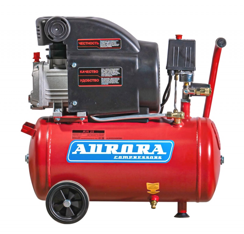 Aurora AIR-25 с успехом справится со снабжением сжатым воздухом широкого спектра пневмоинструмента, который может понадобиться в быту, в гараже, в небольшой мастерской: продувка, подкачка, мовильница, шарошка, некоторые виды строительного инструмента и прочее.